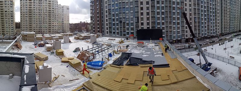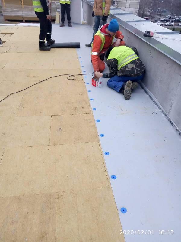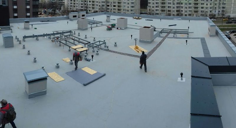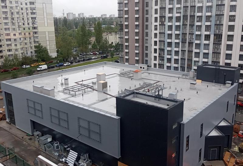 Устройство кровли торгового центра из ПВХ мембраны Protan - 1370 м2