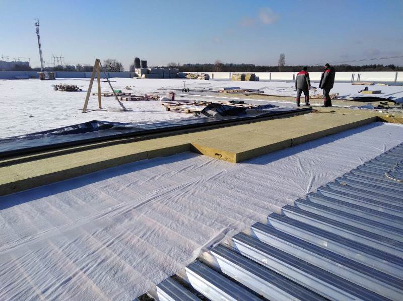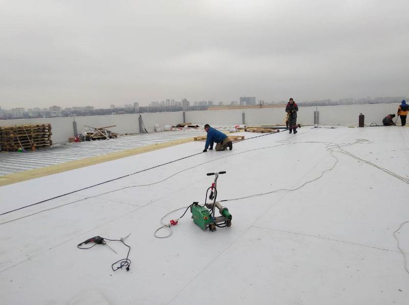 Устройство кровли из ПВХ мембраны, площадь 2900 м2